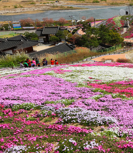 경남에서 가장 넓은 꽃잔디 식재지로 산청 생초국제조각공원 내 꽃잔디 개화기를 맞아 매년 4월~5월 생초면체육회에서 주관하는 꽃잔디 축제가 개최됨