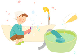샤워하고 난 물을 받아서 애벌빨래 또는 청소용으로 활용하면 많은 물을 절약할 수 있습니다.